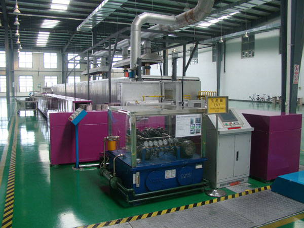六、電氣部分要求: 6.1電氣部分可分為:電控部分、溫控部分、微機(jī)監(jiān)控系統(tǒng)及自動(dòng)循環(huán)控制部分。整個(gè)配電通過(guò)空氣開關(guān)配送,空氣開關(guān)容量按各部分功率選擇;每個(gè)溫區(qū)采用獨(dú)立的空氣開關(guān)控制。 6.2控溫儀表選用數(shù)顯智能型儀表,控溫儀表設(shè)有手動(dòng)及自動(dòng)PID調(diào)節(jié),可自動(dòng)跟蹤設(shè)定最佳PID值,同時(shí)具有溫度補(bǔ)償、超溫、斷偶等聲光報(bào)警功能。 6.3加熱組件:加熱組件采用等直徑硅碳棒。 6.4控制柜面板上裝有總電源開關(guān)、電壓表、電流表,智能數(shù)顯控溫儀表、開關(guān)、按鈕、指示燈等,并有相應(yīng)的中文指示標(biāo)牌。 6.5自動(dòng)送料系統(tǒng)的控制采用可編程控制器(PLC)控制;PLC系統(tǒng)有計(jì)時(shí)和計(jì)數(shù)功能。在電爐兩端設(shè)有手動(dòng)操作按鈕臺(tái),自動(dòng)手動(dòng)調(diào)節(jié)方便。 6.6供氣要有低壓報(bào)警裝置。 6.8計(jì)算機(jī)監(jiān)控系統(tǒng) 6.8.1采用工控計(jì)算機(jī)對(duì)電爐的溫度、速度、報(bào)警事件,冷卻等進(jìn)行全面監(jiān)控并有遠(yuǎn)程監(jiān)控之功能。 6.8.2對(duì)電爐的溫度控制點(diǎn)進(jìn)行溫度設(shè)定、記錄100條工藝曲線。對(duì)推板推進(jìn)的數(shù)量記錄。工藝時(shí)間的設(shè)定。報(bào)表、外接打印。