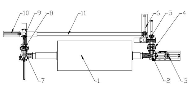 其中:1—爐體;2—進料倉;3—主推裝置;4—前置換倉內(nèi)閘門;5—前置換倉;6—入推裝置;7—出料倉;8—后置換倉內(nèi)閘門;9—后置換倉;10—回推裝置;11—通軌。